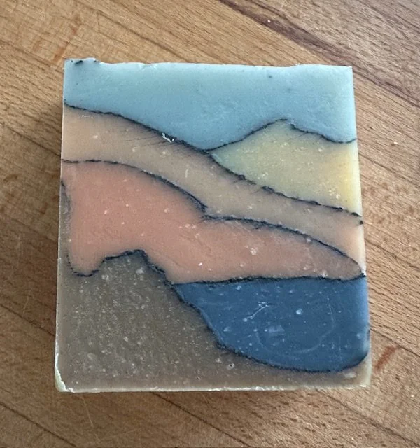 Below is a soap I made recently, inspired by the ocean and hills where I grew up. It even has a little bit of patchouli in there, to really seal the deal. It’ll be available to purchase soon. I love it.